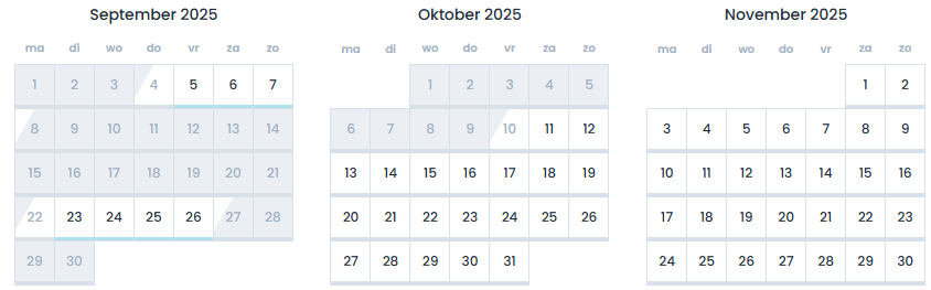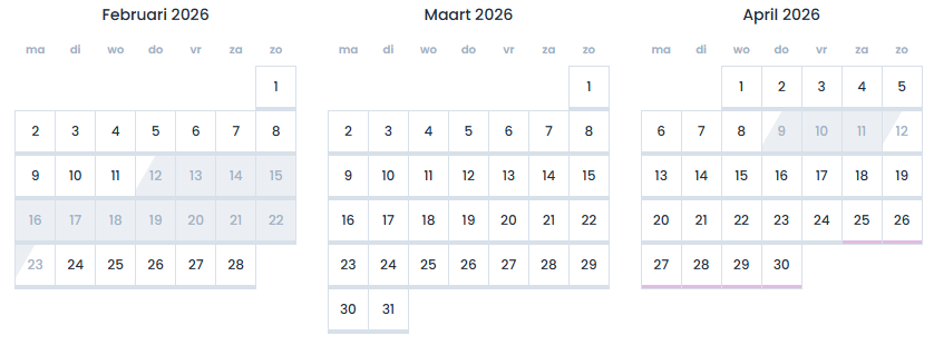 Hieronder ziet u, in de witte vlakken, de datums wanneer deze camper nog beschikbaar is: